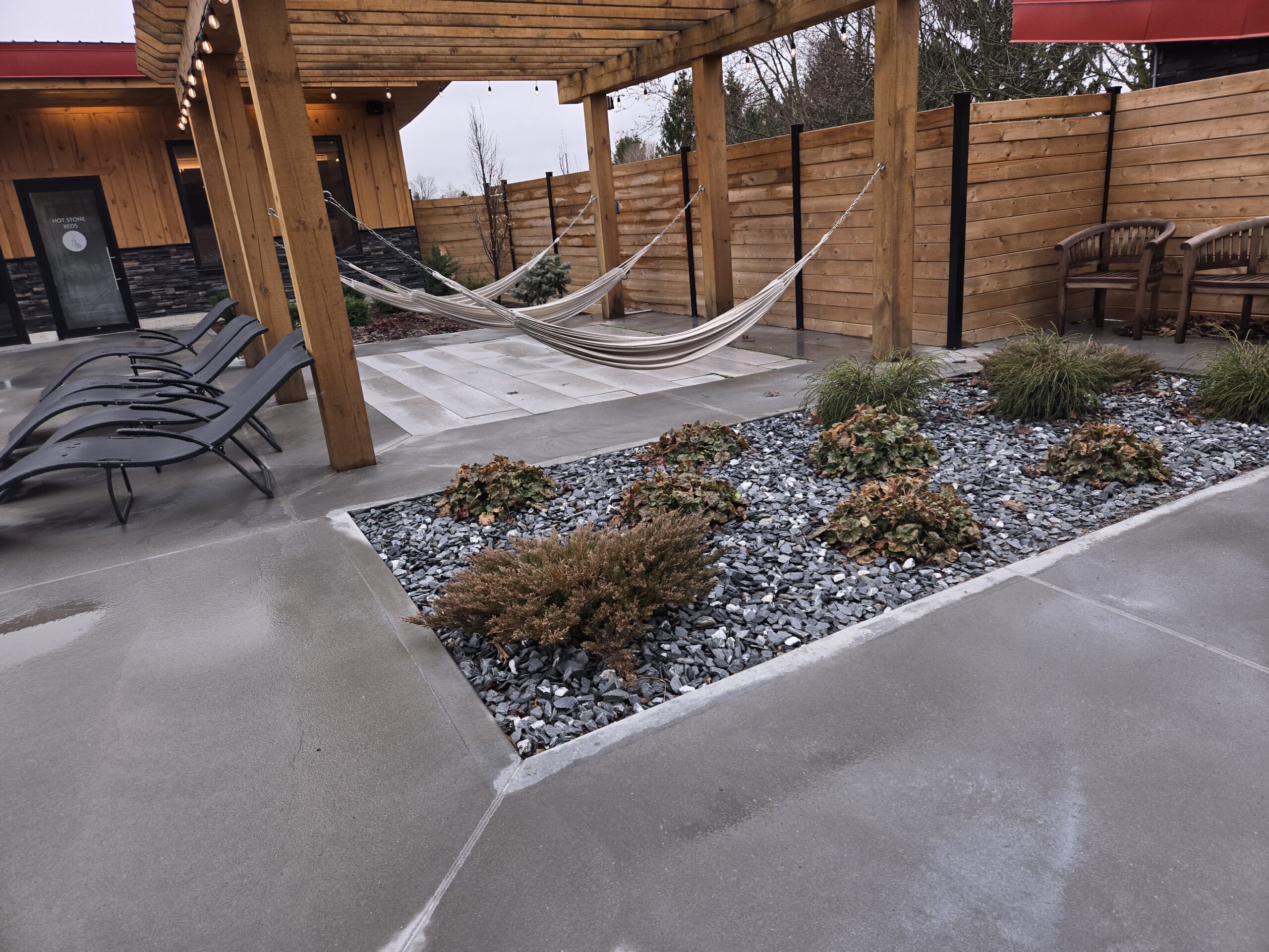 Wave Nordic Spa features several amenities for the bathers to enjoy. The environment is very casual. You have a set check-in time, but there is no time limit on your stay. The spa features three pools, of which one is a hot tub, one is a cold plunge, and one is a more moderate temperature. The spa features a large public sauna that can hold over 15 people at one time. There is another relaxation room, and a hot stone bed room off to the side. There were two large fire pits on-site, and these became natural conversation areas for the bathers. While the weather was poor the day of my visit. There are also two large scented steam rooms. The change rooms were clean and well stocked. The facility looked brand new and recently renovated. It was a pleasure to relax at their spa!