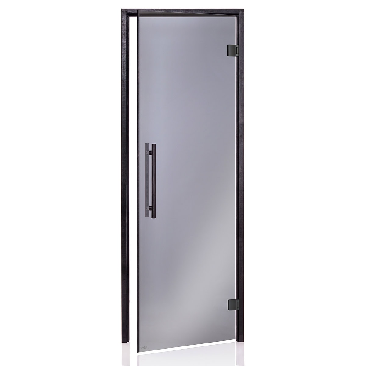 Our Frameless Glass doors come Pre-hung in a wooden jamb. Our Black frame option is made with Aspen wood, stained and lacquered black, with Benelux hinges. We offer a choice between clear, and a modern grey glass tint.